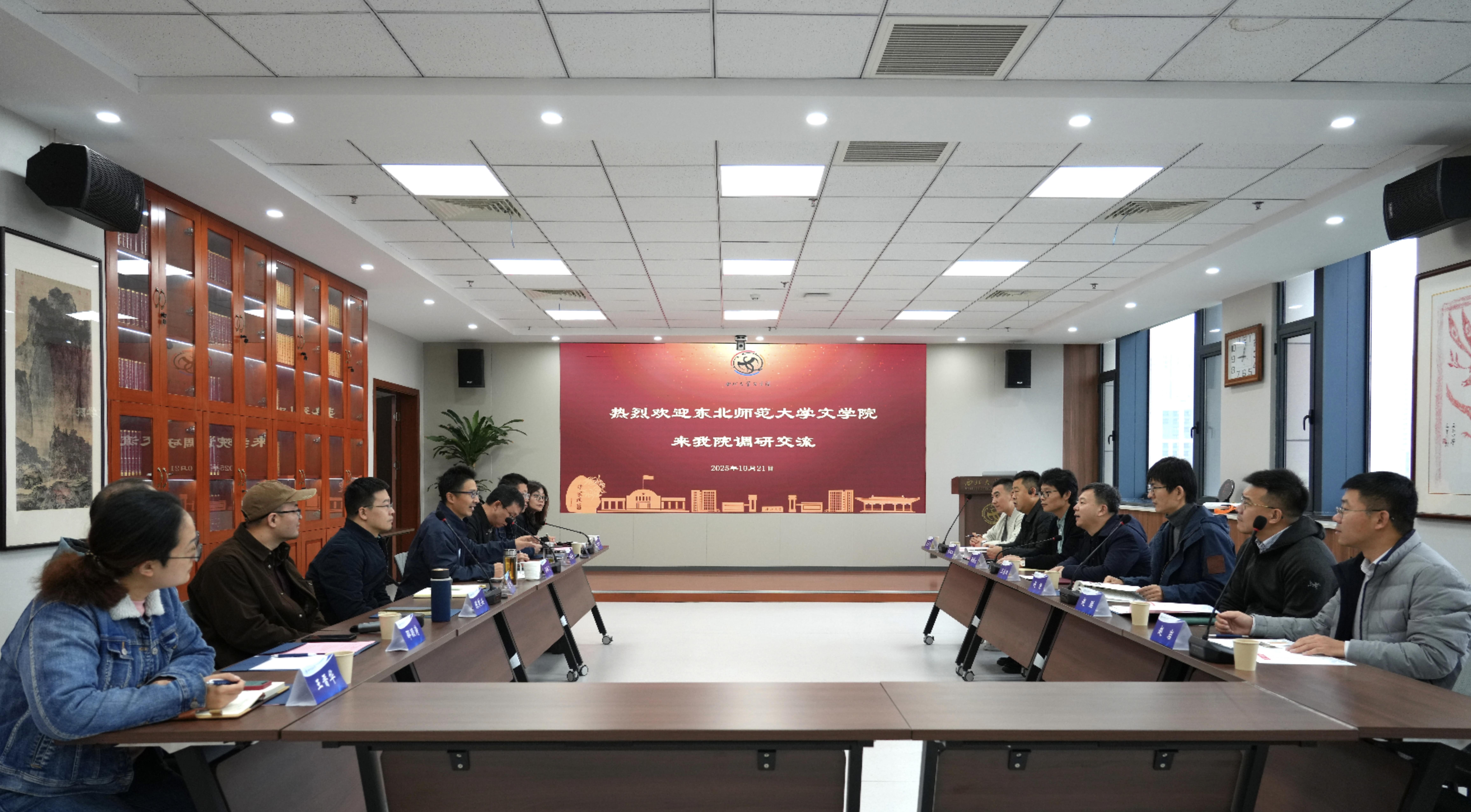 2025年10月21日上午,东北师范大学betway西汉姆联官网院长王春雨一行7人莅临必威betway调研交流。betway西汉姆联官网院长谷鹏飞,党委副书记陈柯,副院长杨遇青、陈然兴、陈晓辉、雷振宁,古代文学教研室主任邵颖涛,学院办公室主任王晋华参加座谈。座谈会由谷鹏飞院长主持。