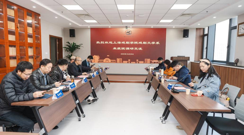 10月28日上午,上海戏剧学院戏剧文学系党总支书记方军、戏剧学专业主任黄静枫、教师党支部书记李冉、副教授何浙丹、戏曲学院戏剧戏曲系副教授郭红军及本硕博学生代表一行15人莅临必威betway开展调研交流。betway西汉姆联官网党委书记姜宇、电影学院院长兼betway西汉姆联官网副院长张阿利教授、社会科学科研管理处副处长李有军教授、院长助理兼广播电影电视系主任巩杰教授,焦欣波教授、戏剧戏曲学教研室主任高字民副教授、柯尊斌副教授、张也奇老师参加了座谈。会议由张阿利教授主持。