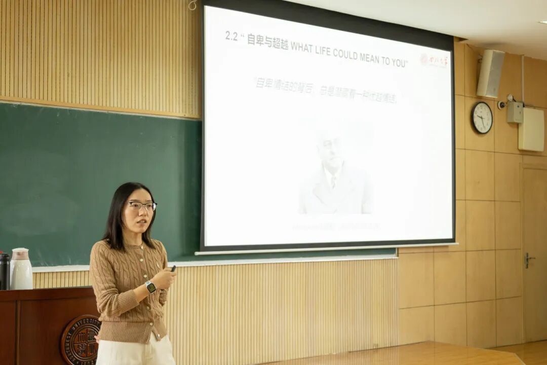 随后,杨婉晨老师从“什么是心理健康”出发,引导同学们建立科学认知。她指出,不应简单地将心理状态划分为“健康”与“不健康”的二元对立,并强调心理健康本质上是一个动态发展的谱系,每个人都会因学业、人际或未来规划等因素在此谱系中波动。因此,维护心理健康的关键不在于追求绝对稳定,而在于注重培养自我调适、恢复平衡的能力。