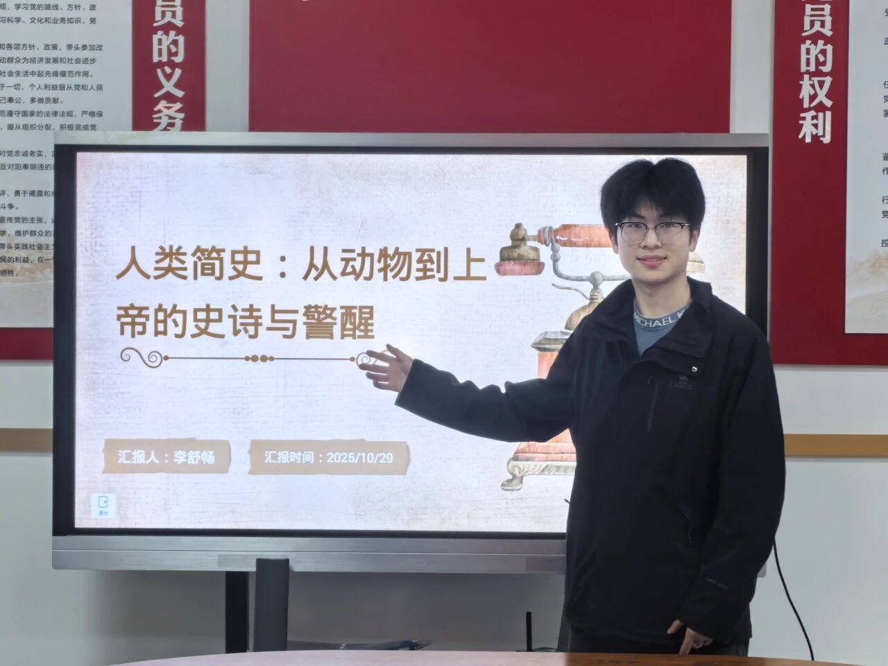 来自计算机学院的邵欣润同学围绕《未来简史》中最具冲击力的未来预言展开分享,将赫拉利的核心观点拆解为可感知的警示,带我们领略了关于未来的种种前瞻性思考。当瘟疫、饥荒、战争等传统威胁被攻克,人类将把永生、幸福、成为神人列为新目标,但这些神性力量背后,却隐藏着更严峻的挑战。少数通过技术增强的神人,或将与多数无用阶级形成新的物种分化。而待数据主义兴起后,人类的价值甚至可能沦为数据流动的燃料。主讲人认为《未来简史》的价值不在于渲染焦虑,而在于提醒我们对存在意义的追问,以及思考法律对技术红线的划定。这才是避免人类迷失的关键。未来的技术发展,必须以人的尊严为底线,否则成神的梦想终将变成失人的悲剧。