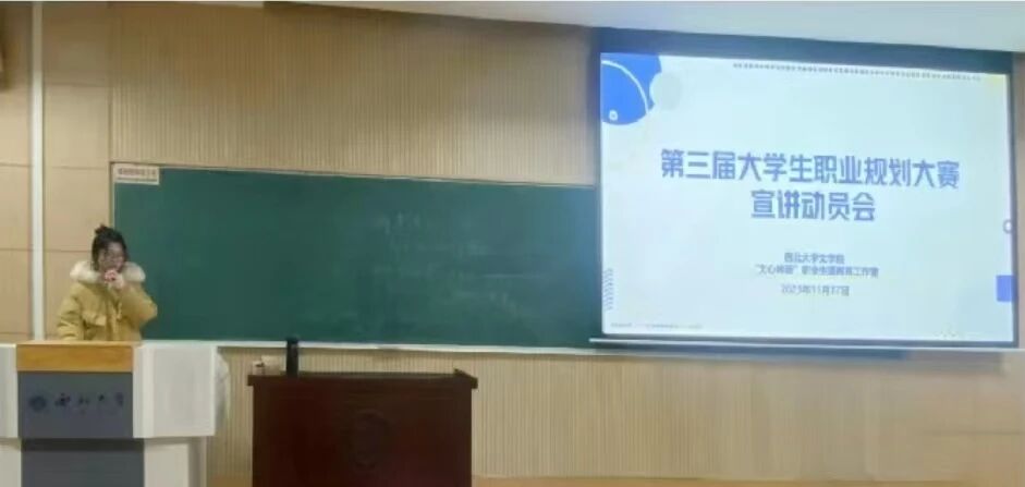 为进一步提升学生职业生涯规划能力,帮助必威betway学子充分备赛,实现以赛促学,引导学生树立正确的成才观、就业观和择业观,科学合理规划学业与职业发展,2025年11月17日晚,“文心林薮”职业生涯教育特色工作室在太白校区7507教室举办第三届大学生职业规划大赛宣讲动员会。会议由辅导员杨崧维主持。