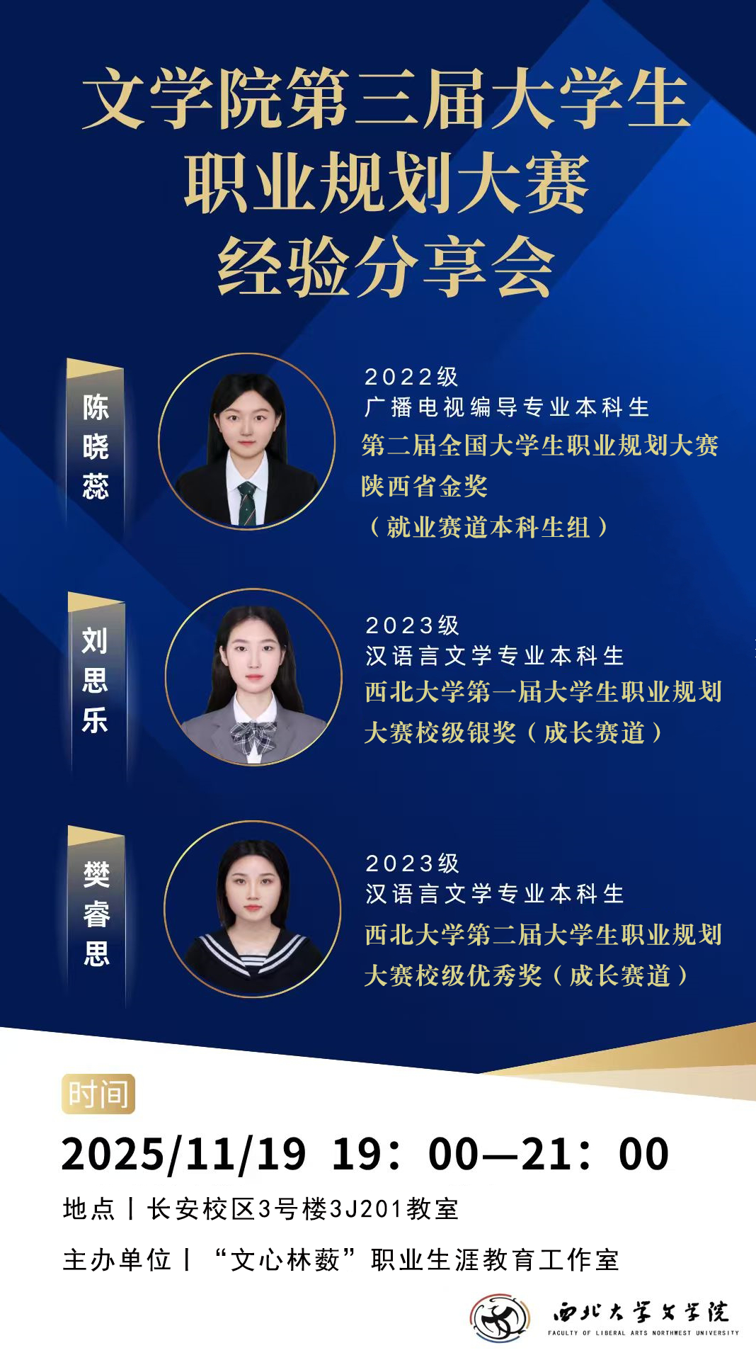 下一步,“文心林薮”工作室将继续以赛事为契机和抓手,引导同学们立足专业领域,向内探索自我潜能与兴趣方向,主动开展职业探索,明确发展目标,在专业学习与实践锻炼中积累实力,为未来职业发展筑牢基础。
