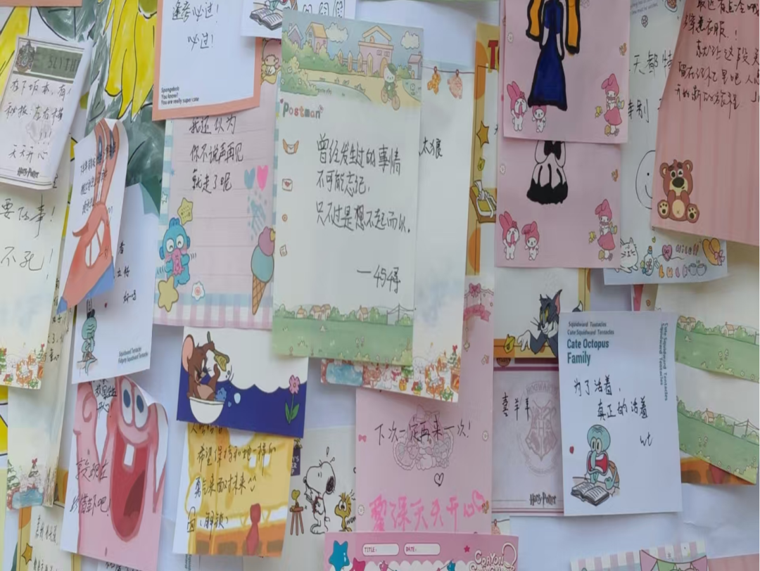 那些不敢轻易说出口的情绪,在笔下变得温柔而坦然。这面墙成了我们共同的“心情树洞”,也是彼此无声的鼓励。