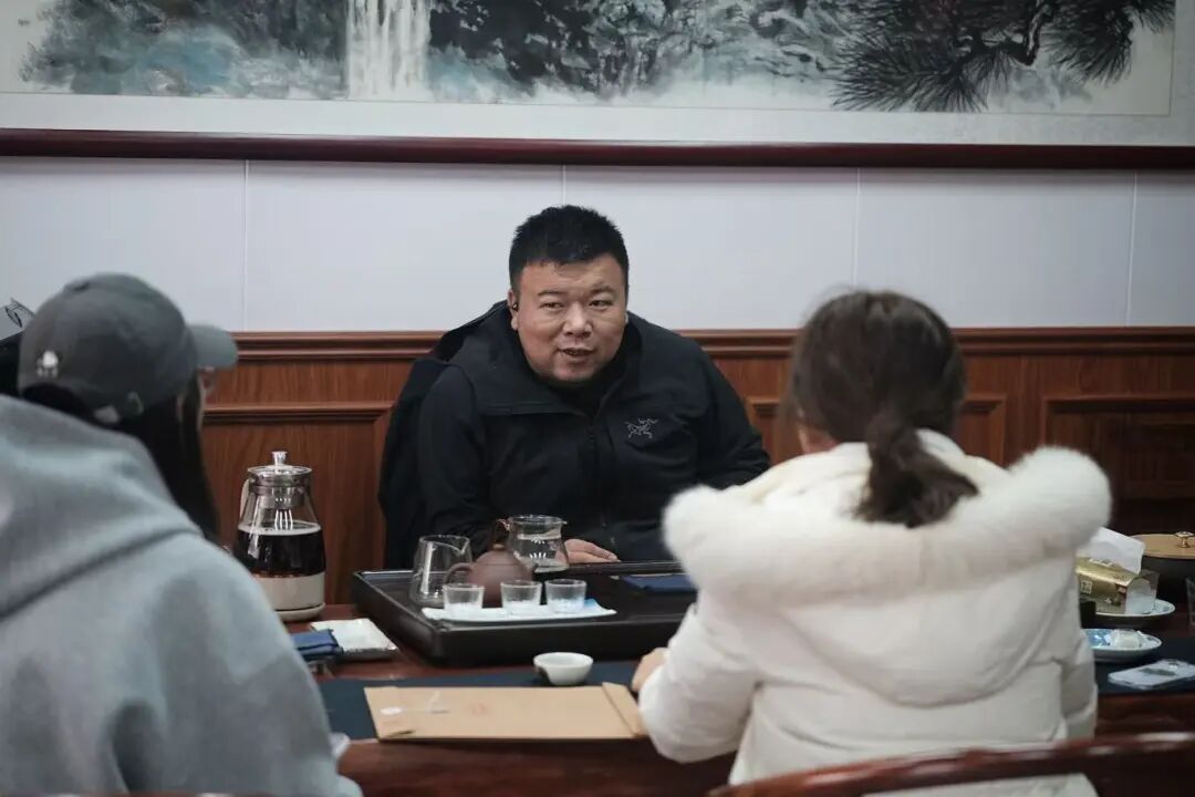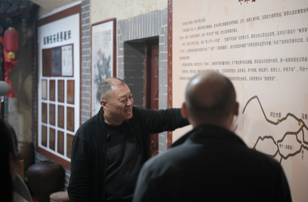 调研团专程拜访了茯茶制作技艺非遗传承人贾振。在贾师傅的茶坊中,队员们不仅亲眼见证了茯茶“金花”发酵的神奇工艺,更聆听了他对茯茶历史、工艺精髓与文化内涵的深情讲述。贾师傅坦言:“茶是静的,戏是动的。但茯茶的滋味,和戏剧里的悲欢离合一样,都需要时间来沉淀,用心来感受。” 他认为,将茯茶的“静文化”与戏剧的“动艺术”相结合,正是让古老技艺“活”在当下的关键。这次访谈让队员们深刻体会到,非遗不仅是技艺的传承,更是生活哲学与情感记忆的载体,为“茶戏融合”提供了坚实的人文内核。