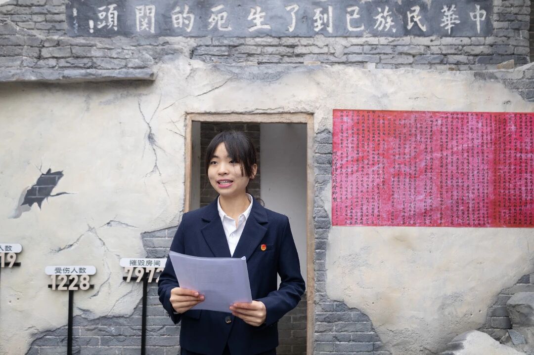 集体参观结束后,杨崧维老师以纪念馆为课堂,为同学们带来了一节生动的沉浸式青春微团课。他结合学科专业特色、校情校史和抗战时期的优秀校友事迹,引导大家在日常学习生活中积极主动传承红色文化、讲好中国故事,用青年之力回答“明天之问”。团员们在交流中互鉴共进,从抗战历史中汲取奋进力量,明确时代赋予的责任与使命,以坚定姿态守护来之不易的发展环境。