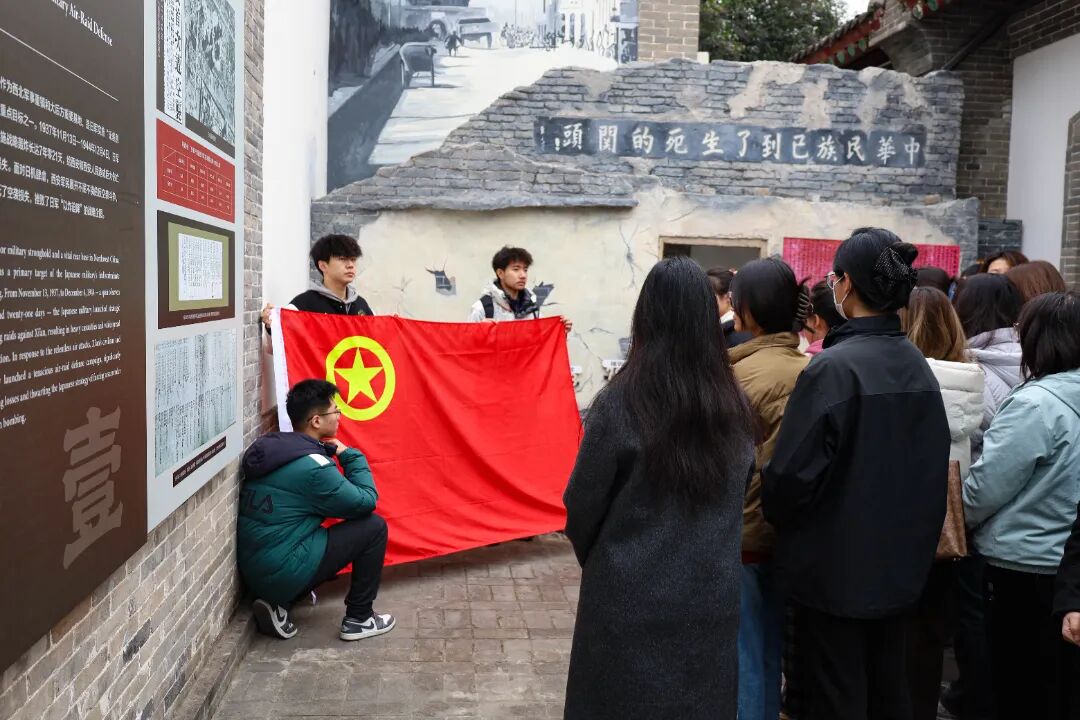 活动最后,全体成员在胡冠琼同学的带领下,面向团旗,庄严重温入团誓词。铿锵的誓言回荡在纪念馆中,提醒着每一位团员不忘初心、牢记使命,将爱国之情、报国之志转化为实学实干、砥砺前行的不竭动力。