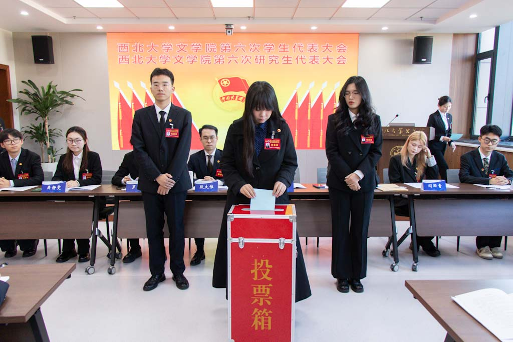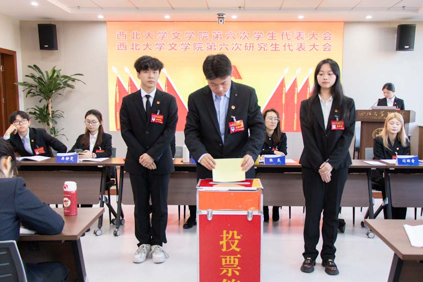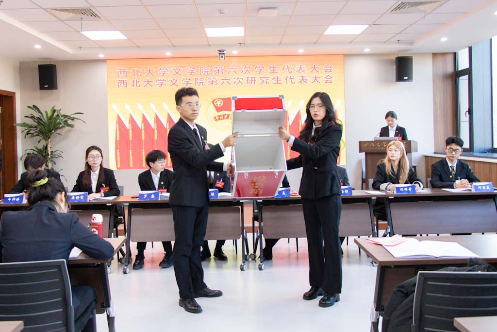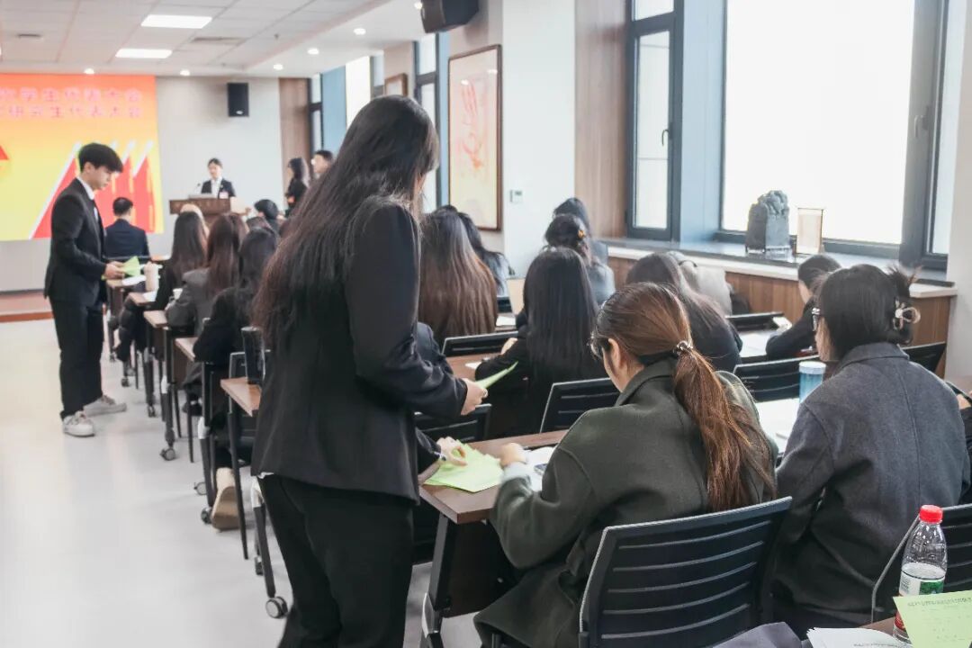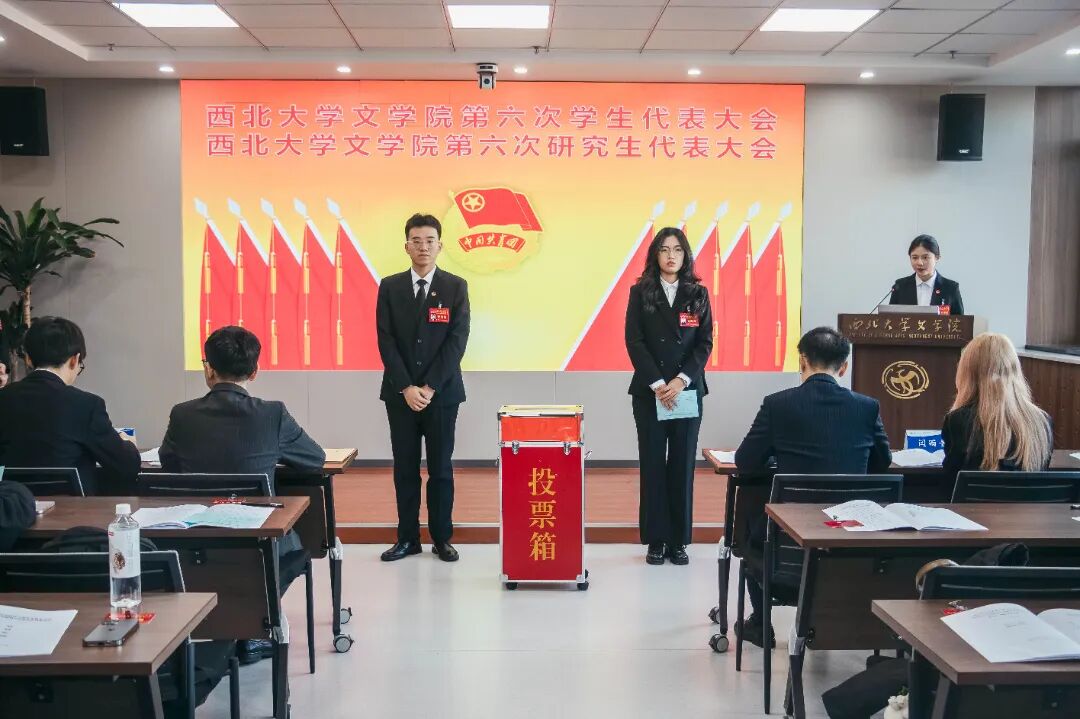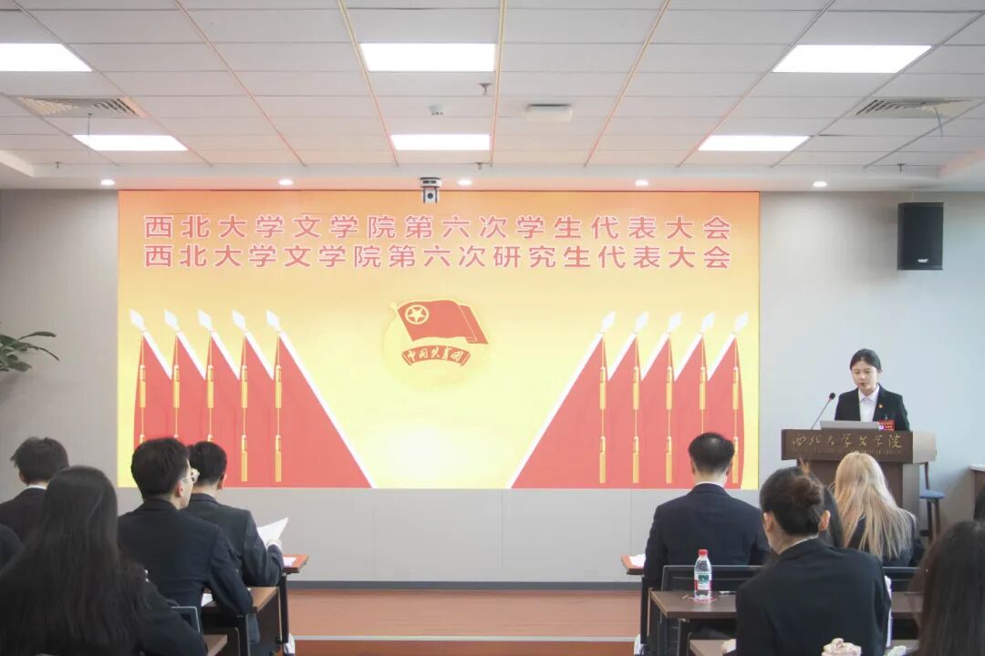 betway西汉姆联官网第五届学生会主席团成员曹煜辰、第五届研究生会主席团成员王哲分别作了题为《深学细悟凝聚青春力量,挺膺担当谱写文苑新章》《凝心聚力担使命 守正创新谱新章 团结引领全院研究生在强国建设征程中挺膺担当》的工作报告。