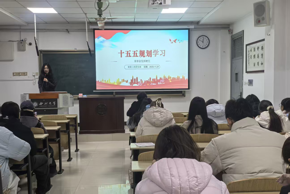 11月24日上午,betway西汉姆联官网2025级中文三班团支部全体团员,在团支部书记周欣然的带领下,开展《中共中央关于制定国民经济和社会发展第十五个五年规划的建议》专题理论学习。
