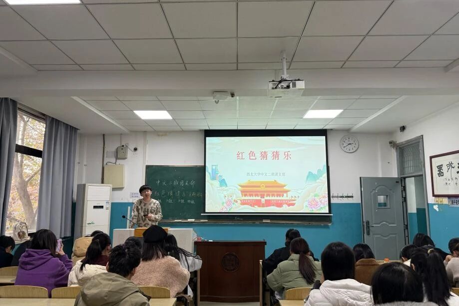 11月26日,betway西汉姆联官网2025级中文二班团支部于太白校区7302教室开展“薪火相传猜红典”主题团日活动,旨在以趣味形式深化红色文化认知,凝聚团支部青春向心力。