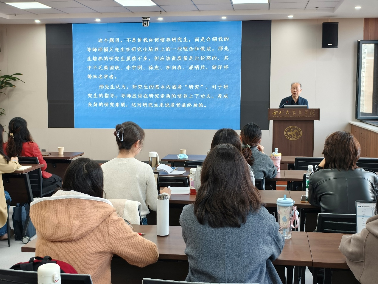 汪国胜教授以介绍导师邢福义先生在研究生培养上的一些理念和做法作引入,并结合自身体验指出研究生的基本内涵是“研究”。他认为对于研究生的指导,应在“三力”——观察力、创新力和表达力的培养上下功夫。